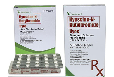 هيوسين بيوتيل بروميد Hyoscin Butylbromhde لعلاج المغص والتقلصات , هيوسين بيوتيل بروميد من الأدوية الفعالة والتي لها تركيز فعال وسريع مضاد للمسكارين ولا يمتص من جهة الجهاز الهضمي ولا يعبر الحاجز الدموي المخي, يتم تناوله عبر الفم ويصل تركيز لأعلي تركيز خلال ساعتين من تناول الدواء ويستمر فاعليته لمدة 8 ساعات ويتم استطراد الدواء عن طريق البول بنسبة 2%, وبنسبة 9% عن طريق البراز.