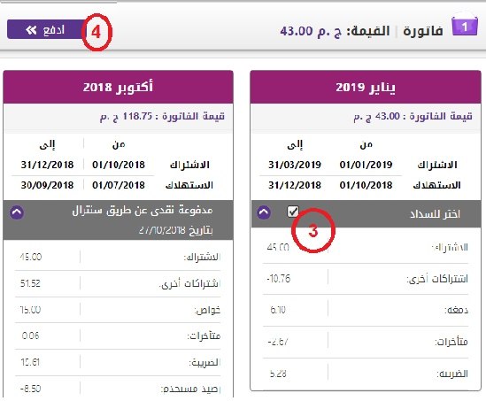 رابعا : يتم دخولك على صفحة الفواتير المتعلقة بك كما هى موضع فى