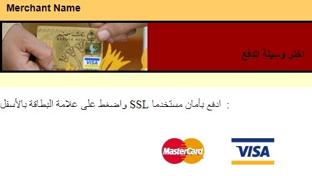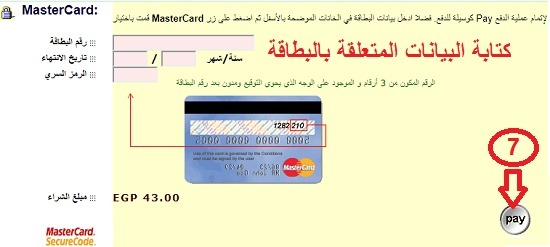 الخطوة السادسة :  هى اختيار وسيلة الدفع سواء باستخدام الفيزا او ماستر كارد والتحويل لصفحة كتاة البيانات الخاصة بالكارت.
