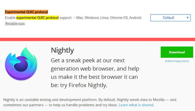 وبهذا ستستطيع تجربة بروتوكول HTTP/3 بشكل تجريبي على كل من هذه