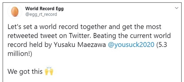 وتصدرت تغريدة البيضة قائمة أكثر التغريدات التي أعيد تغريدها، حيث تمت إعادة تغريدها 957.600 مرة، وحصلت على 582.300 إعجاب.