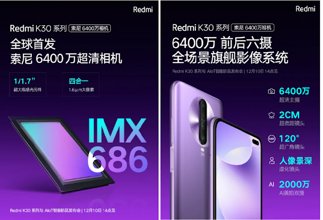 تنطلق هواتف Redmi K30 في 10 من ديسمبر بمستشعر Sony IMX686 بدقة 64 ميجا بيكسل