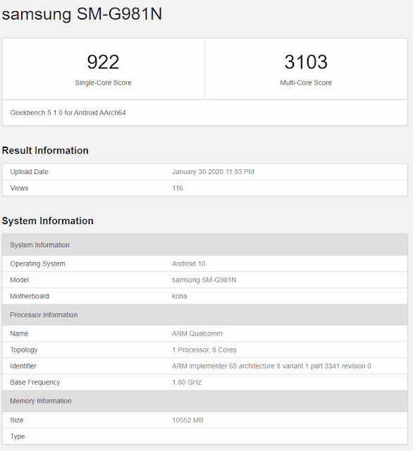 Galaxy S20 Plusأخبار ساخنةاندرويد وهواتف ذكيةعلوم وتكنولوجيا وهواتفقوائم Geekbenchهواتف Galaxy S20